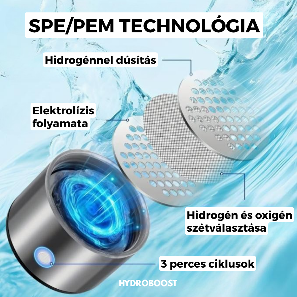 Kíváncsi vagy, mitől lesz vized valódi vitalitásforrás? A HydroSpark kulacsod fejlett technológiával dúsítja a vizet molekuláris hidrogénnel (H₂) – mindössze pár perc alatt.
